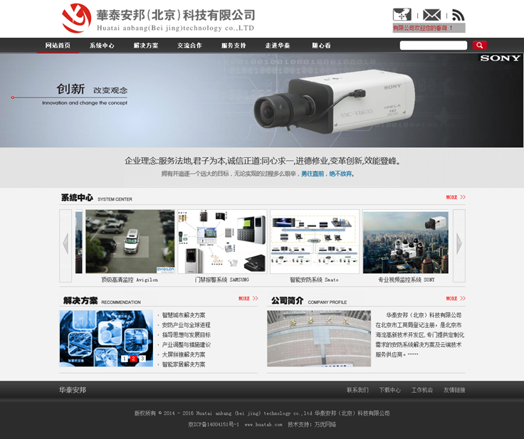 “华泰安邦”主要依托北京科技大学、东北大学等高校科研成果核心技术,拥有一批博士、硕士等高素质经验丰富的研发和项目实施团队,借鉴国内外先进的管理理念,坚持以人为本,打造一支团结、稳定、高效、专业的团队。公司主要提供:SAMSUNG门禁报警系统(全国总经销)、CNB专业视频监控系统(战略合作商)、Avigilon顶级高清监控系统(北方区总经销)、Smato电信级视频联网管理平台及超窄边大屏拼接系统等(北方区总经销),面向社会各行业提供技术领先、品质卓越的的行业解决方案及配套的优质服务。主要应用于:平安城市、金融、政府、政法、部队、电力、石油、化工、机场、海关、轨道交通、高速公路、教育、医疗、厂矿、酒店、商厦、社区等重要行业。